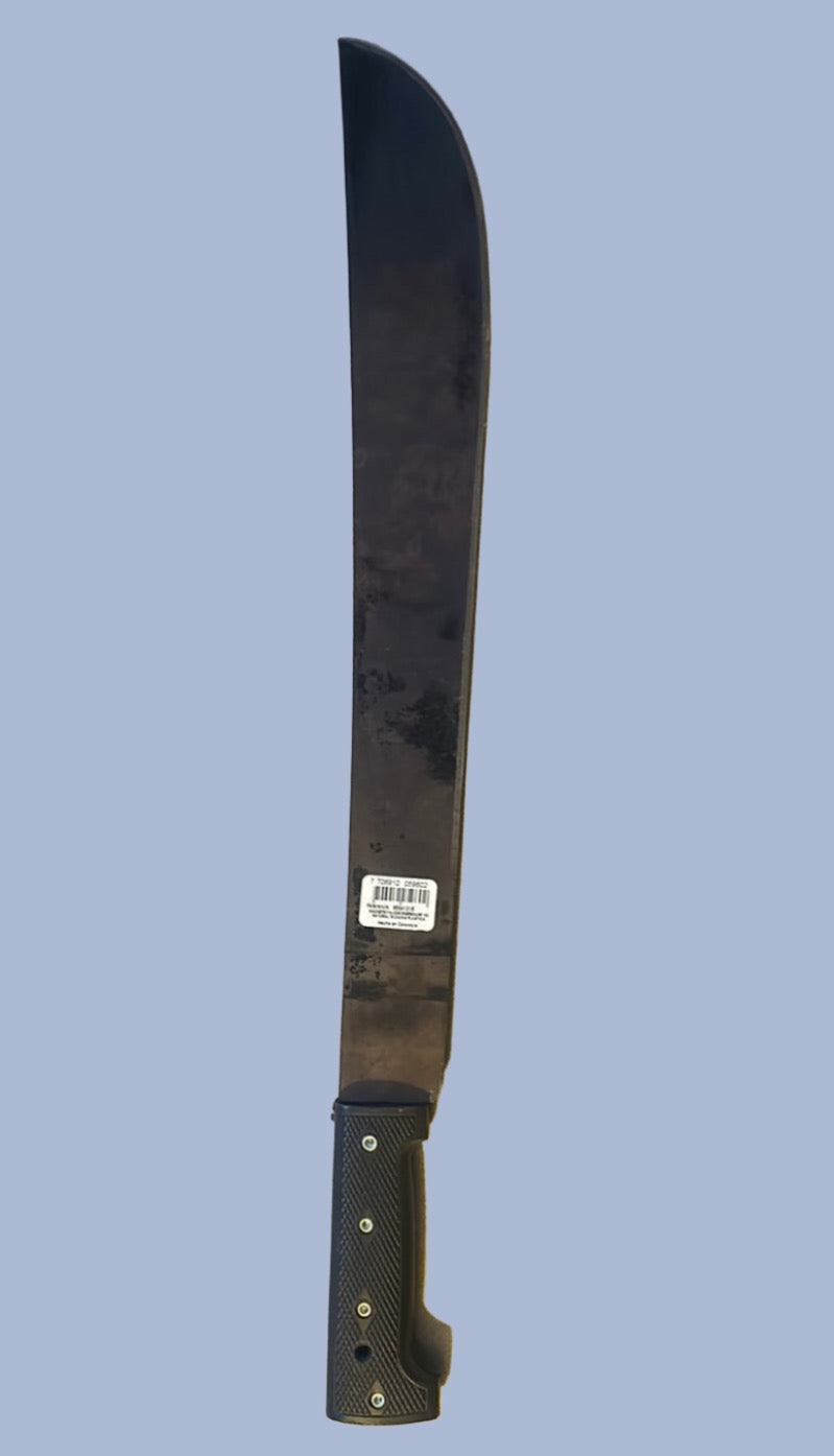 Manufactured with English high carbon steel' 22" blade with 6" plastic injected, riveted handle.